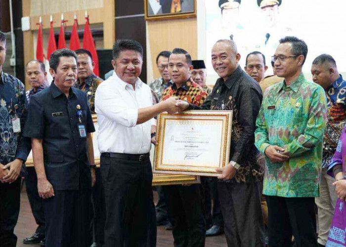Penghargaan ini diserahkan langsung Gubernur Sumsel Dr Herman Deru bersama Perencana Ahli Muda Ditjen Dukcapil Kemendagri, Zainudin MSi kepada Asisten II Setda Muba Alva Elan SST MPSDA dan Plt Kadisdukcapil Muba, Agus Kurniawan Saputra SIP MSi.