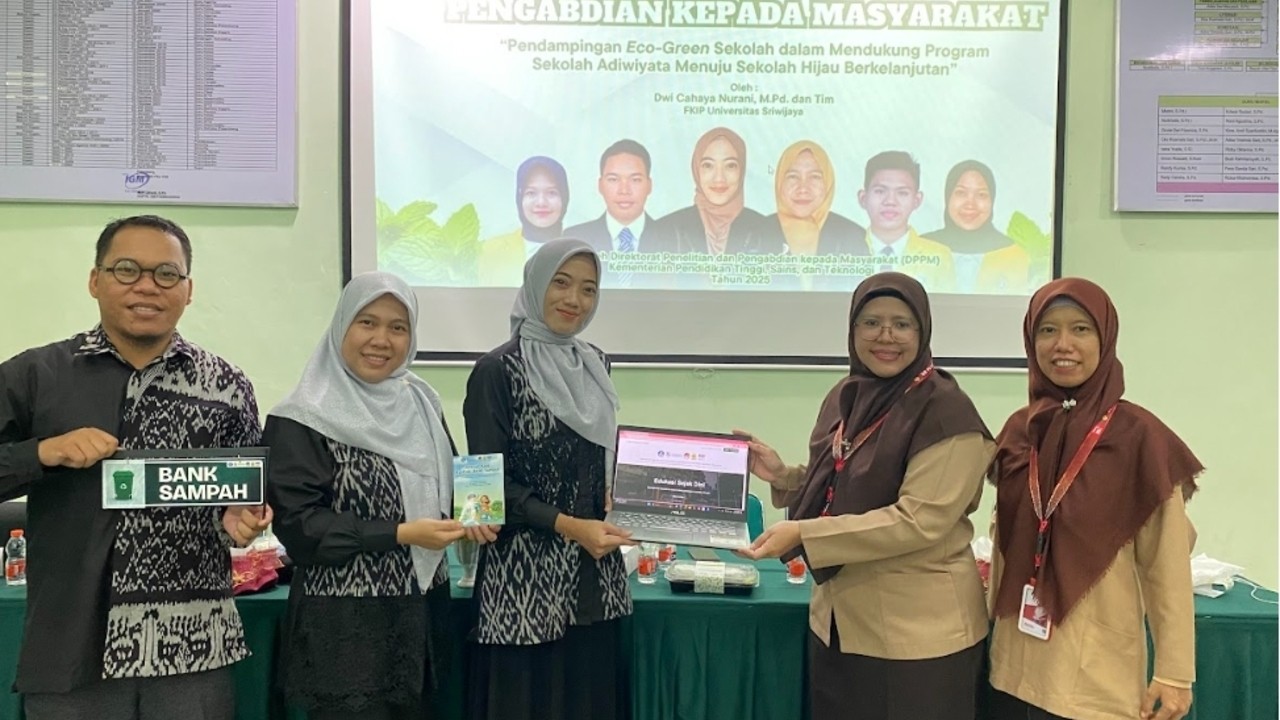 Untuk menjawab tantangan tersebut, tim dosen dan mahasiswa FKIP Universitas Sriwijaya melaksanakan kegiatan pengabdian masyarakat bertajuk Pendampingan Eco-Green Sekolah dalam Mendukung Program Sekolah Adiwiyata Menuju Sekolah Hijau Berkelanjutan yang merupakan kegiatan pengadian yang didanai oleh Direktorat Penelitian dan Pengabdian Kepada Masyarakat Kementerian Pendidikan Tinggi, Sains, dan Teknologi.