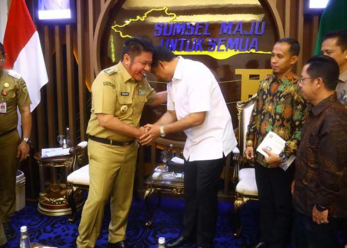 Gubernur Sumsel H Herman Deru saat menerima kedatangan petugas BPS Sumsel, Sabtu 15 Oktober 2022. -Palpos.id-Humas Pemprov Sumsel