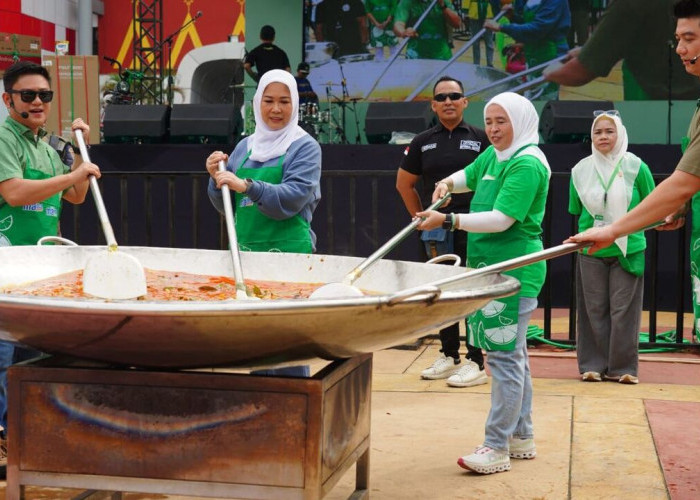 Ketua TP PKK Provinsi Sumsel, Feby Deru, tampil langsung sebagai juru masak utama bersama dua chef ternama Tanah Air, Chef Arnold dan Bobon Santoso.